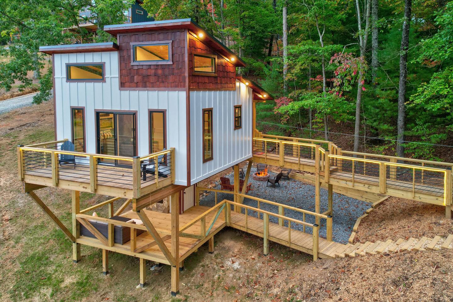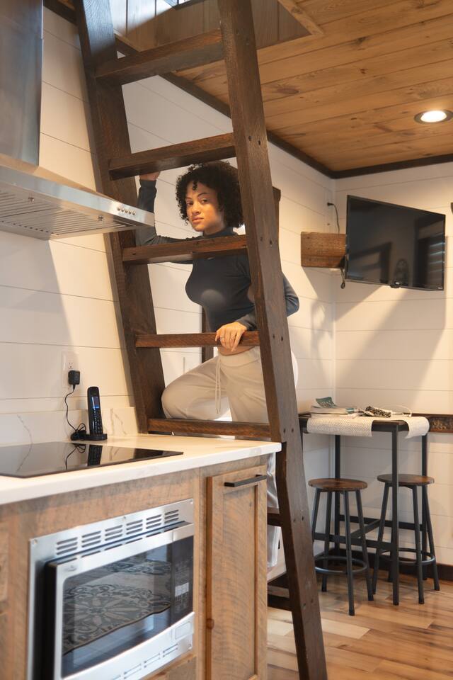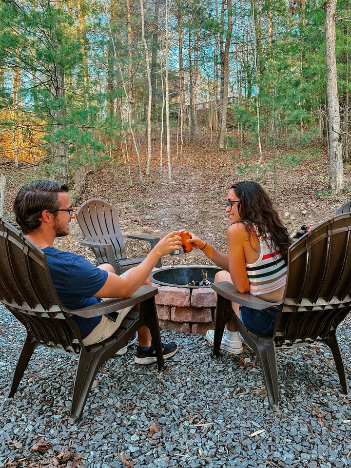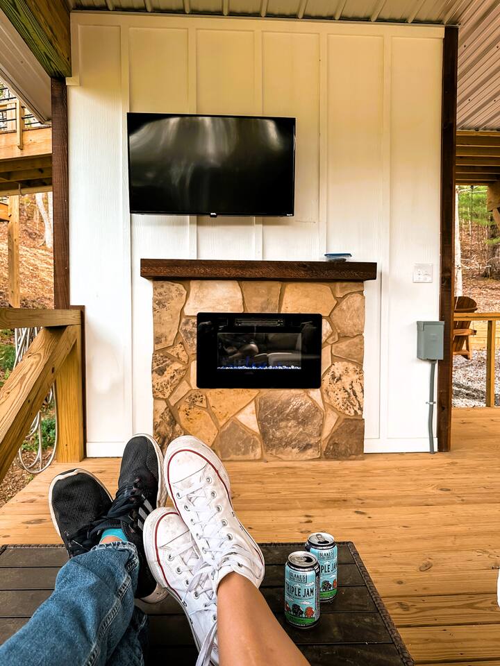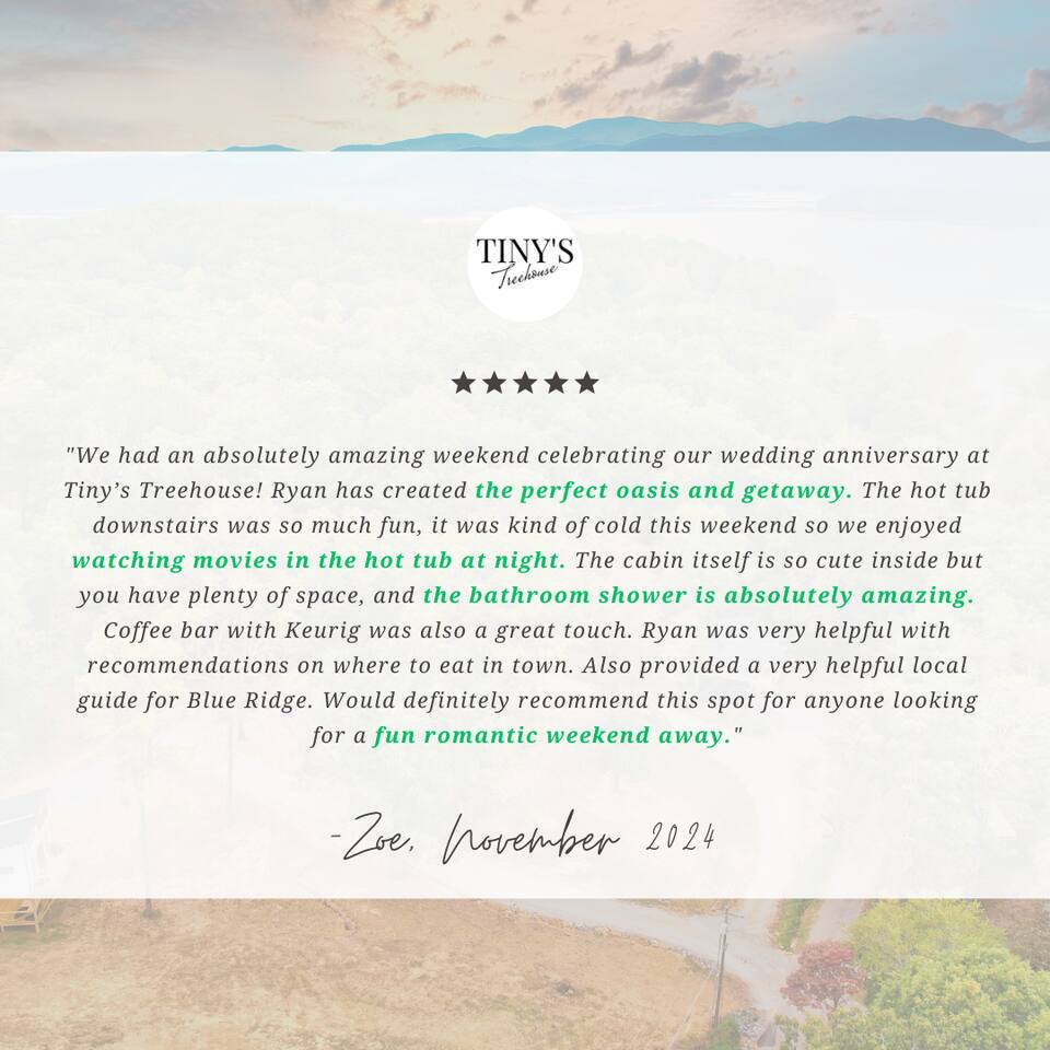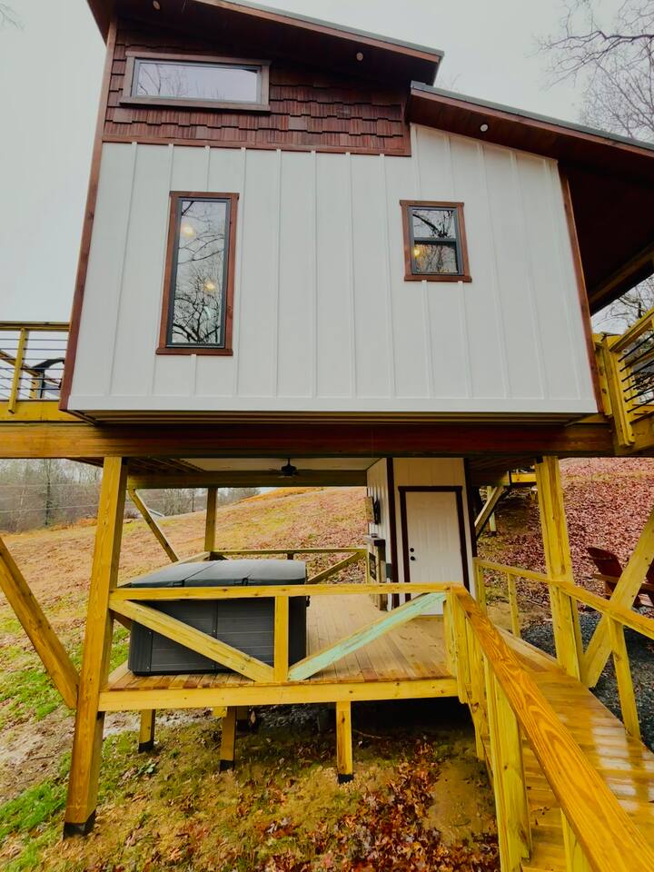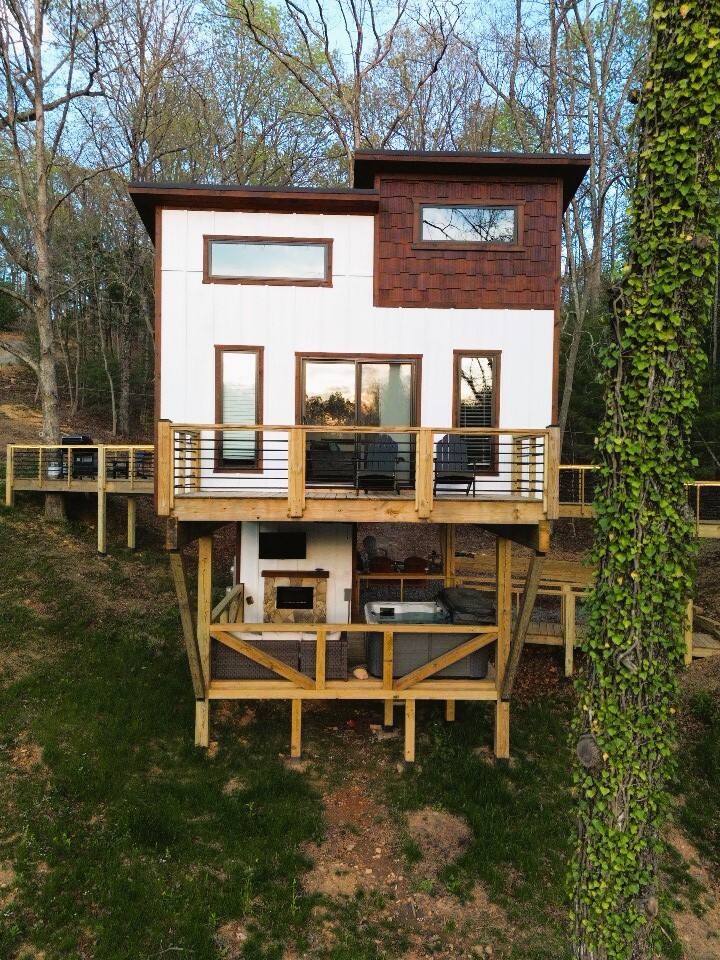 Why Guests Love It Here: Perfect for unplugging and reconnecting, while still enjoying high-speed Wi-Fi (100–200 Mbps) for work or streaming. Whether soaking in the hot tub under the stars or sipping wine by the fireplace, Tiny’s Treehouse is a place to make memories. This cabin comfortably sleeps 4 with a king master suite and an adventurous loft for kids or adults. Perfect for a romantic weekend, family getaway, or lakeside adventure. Bedrooms - Master Bedroom: King bed, private balcony - Loft: Two twin beds, Smart TV, independent climate control (ladder access) Kitchen & Dining - Quartz countertops, farmhouse sink, electric stovetop - Convection microwave & coffee bar (Keurig) - Dining table for two Bathroom - Spa-inspired tiled shower with three shower heads - Complimentary toiletries & plush towels Outdoor Spaces - Covered deck with outdoor fireplace & TV - Private hot tub (open year-round) - Fire pit area with Adirondack chairs - Propane grill & outdoor dining Lake & Local Fun - Deeded lake access – 7 min walk to water - 3 min drive to Morganton Point Recreation Area (swimming, kayaking, hiking) - Close to Blue Ridge Scenic Railway, local wineries, and Chattahoochee National Forest trails Pet-Friendly Comfort - Bring your furry friend ($40/stay) - Walking-friendly neighborhood & lake paths